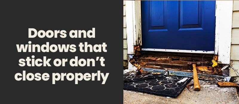 Moisture and excess humidity, especially during summer, often cause wood to swell. This results in doors and windows that stick when you try to open or close them, or they may not close or latch properly. But if you notice there haven't been any drastic changes in heat or humidity lately and your doors and windows continue to stick year-round, then a foundation problem is more likely the cause. When the foundation settles, shifts, or sinks, it creates an imbalance in the home's structure. This imbalance causes the framing around the doors and windows to shift or bulge slightly. You may also notice the window frames starting to pull away from the surrounding brick.